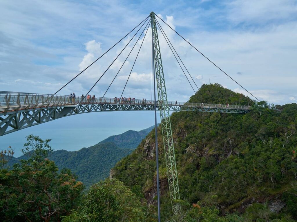 Visitors must hike to the summit before taking the cable cars to reach the foot of the bridge. It’s worth it for the gorgeous views of the Andaman sea and its islands.