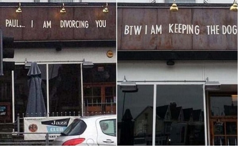 Some people mean business when they break up with someone, while others own them. This shop owner was so infuriated by their partner’s behavior that it seemed to change their shop sign was the only way forward.