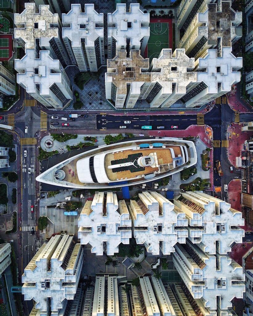 One of the most rated places in the world for aerial photography in Hong Kong, due to its density. Specifically, The Whampoa, the city can be seen with a completely new set of eyes from above.