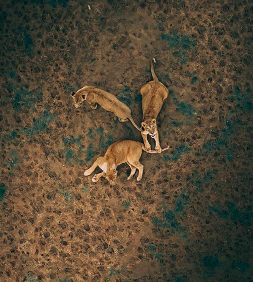 While it makes for a great picture, let’s hope these lions cant jump up and attack the drone.