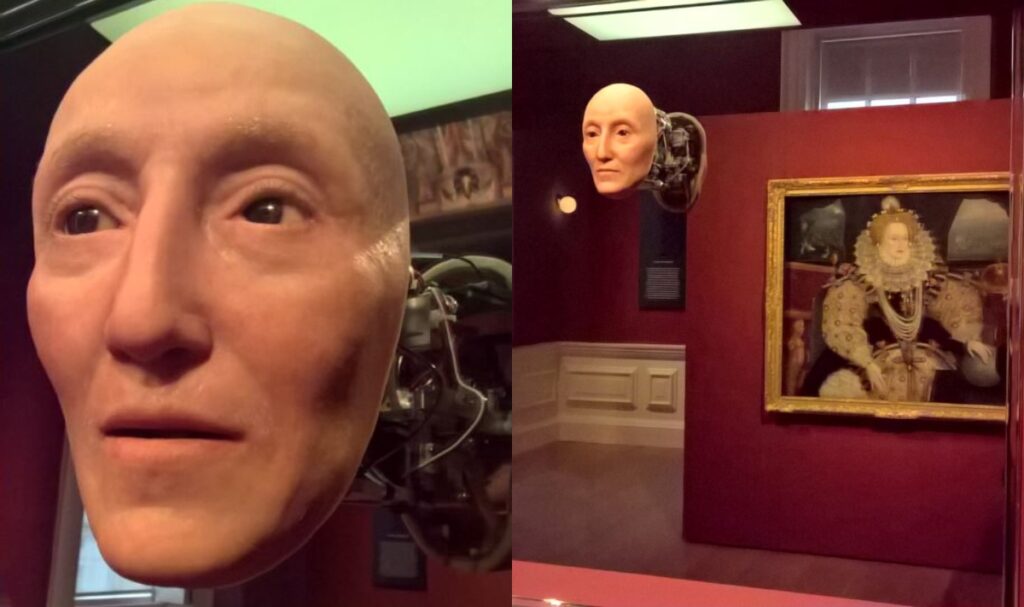 What Collishaw created was a hyper-realistic animatronic mask with eyes that literally follow you around and with a mouth that opens as if it is about to speak. A mirror is attached to the mask, which is now displayed across the Armada Portrait at the Queen’s House. The famous Armada portrait shows a youthful Elizabeth, but she was actually 55 years old when it was painted, and the mask is more accurate in showing what the Virgin Queen might have looked like during that time. Some might say that Queen Elizabeth’s actual face is more or less the same as in her portraits.