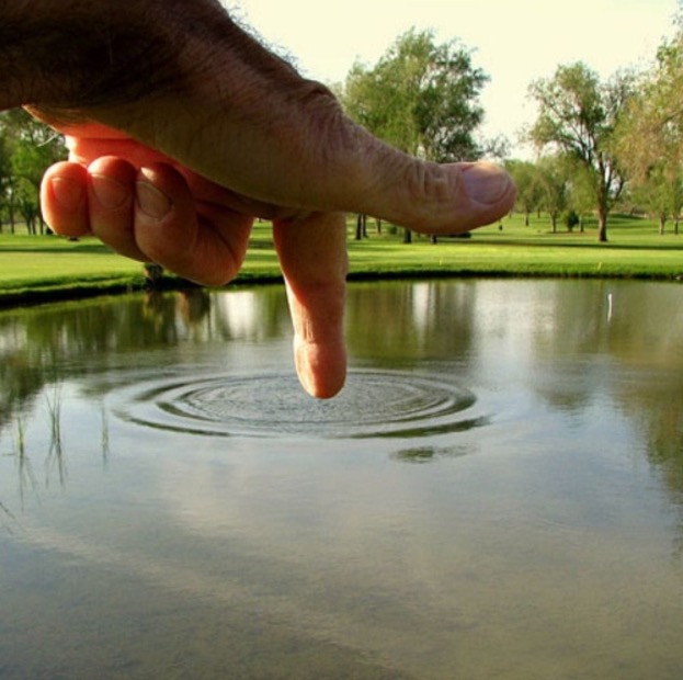 This graphic is amusing and may be the basis for a slew of motivational memes. But, since we hadn’t gotten that far, we were a little taken aback by the image’s perfect timing. It appears that the male is making a lot of noise! In truth, something dropped or was thrown into the water to cause these large ripples, and the photographer simply captured the photo in the right spot.
