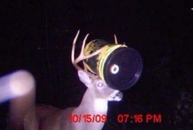 There are so many strange things that happen when we are not around, and here we see a deer strolling about with a barrel attached to its head. From the look of things, the barrel was stuck between its antlers. Funny enough, there can be so many theories associated with why he has a barrel stuck to his head. Could it be that he was in a war with the barrel, and it is still ongoing? Or, could it be that he found a barrel of goodies he is taking home to the rest of the family? We may never know!