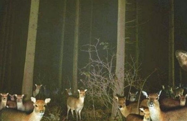Deers are not known to be dangerous when they are generally sitting around but what this trail cam captured somehow has us thinking something different. For a fact, this picture creates a frightening or rather terrifying feeling as all these eyes keep staring at you. This one picture contains so many deers looking the same way and probably thinking the same thing. Was there something in the background they were focusing on, or is it that they simply wanted to give us a great picture by staring in the cam? Either way, it’s rather creepy!
