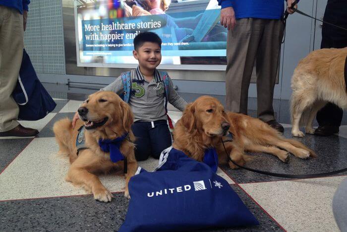 United offers pet travel service for domesticated cats, dogs, rabbits and household birds except Cockatoos. Your pet must travel in a soft-sided or a hard-sided kennel which needs to be small enough to fit under the sit in front of you. There is $125 pet service fee and an additional $125 service charge for layovers of more than four hours. This airline accommodates for service animals and larger animals considered in an area in front fo your seat. Therapy animals must be kept in a kennel as a regular pets.