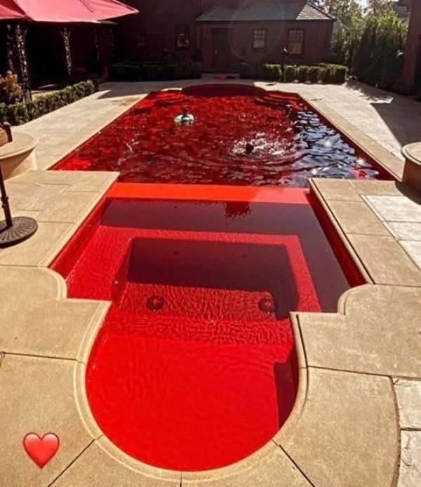 The color scheme of this pool makes it look very interesting. The front of it even looks like a red toilet. Beyond that, it seems like someone turned water into wine. One could easily get that water confused for something else if they didn’t know any better.